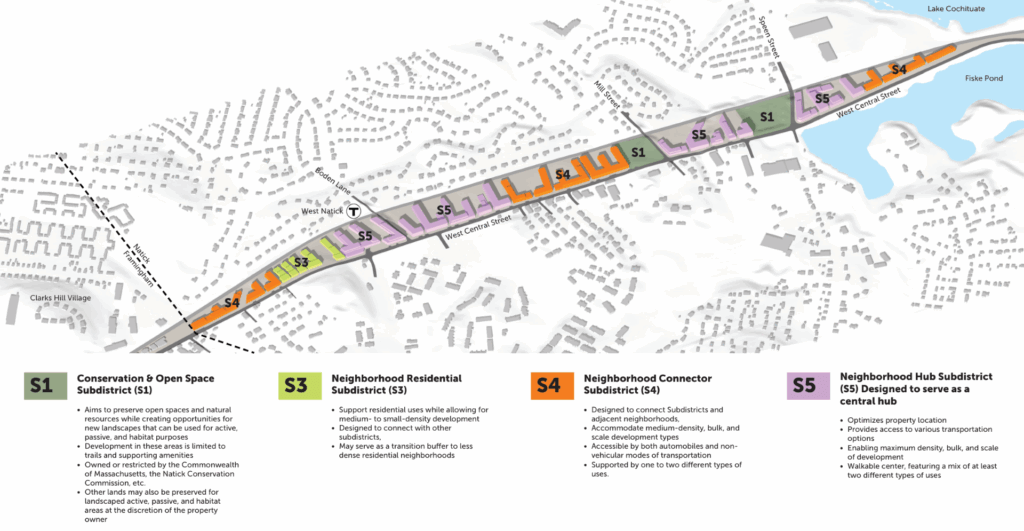 CommunityScale and Bridle Design (landscape and urban design) partnered with the Town of Natick to analyze and visualize a zoning proposal that reimagines the West Central Corridor, a key stretch of Route 135 extending from the Framingham line to Mill Street. This initiative was successful in communicating the vision and adopting the zoning. The zoning represents a strategic approach to reform that balances growth opportunities with community character, creating a framework for sustainable mixed-use development along this important gateway corridor.
